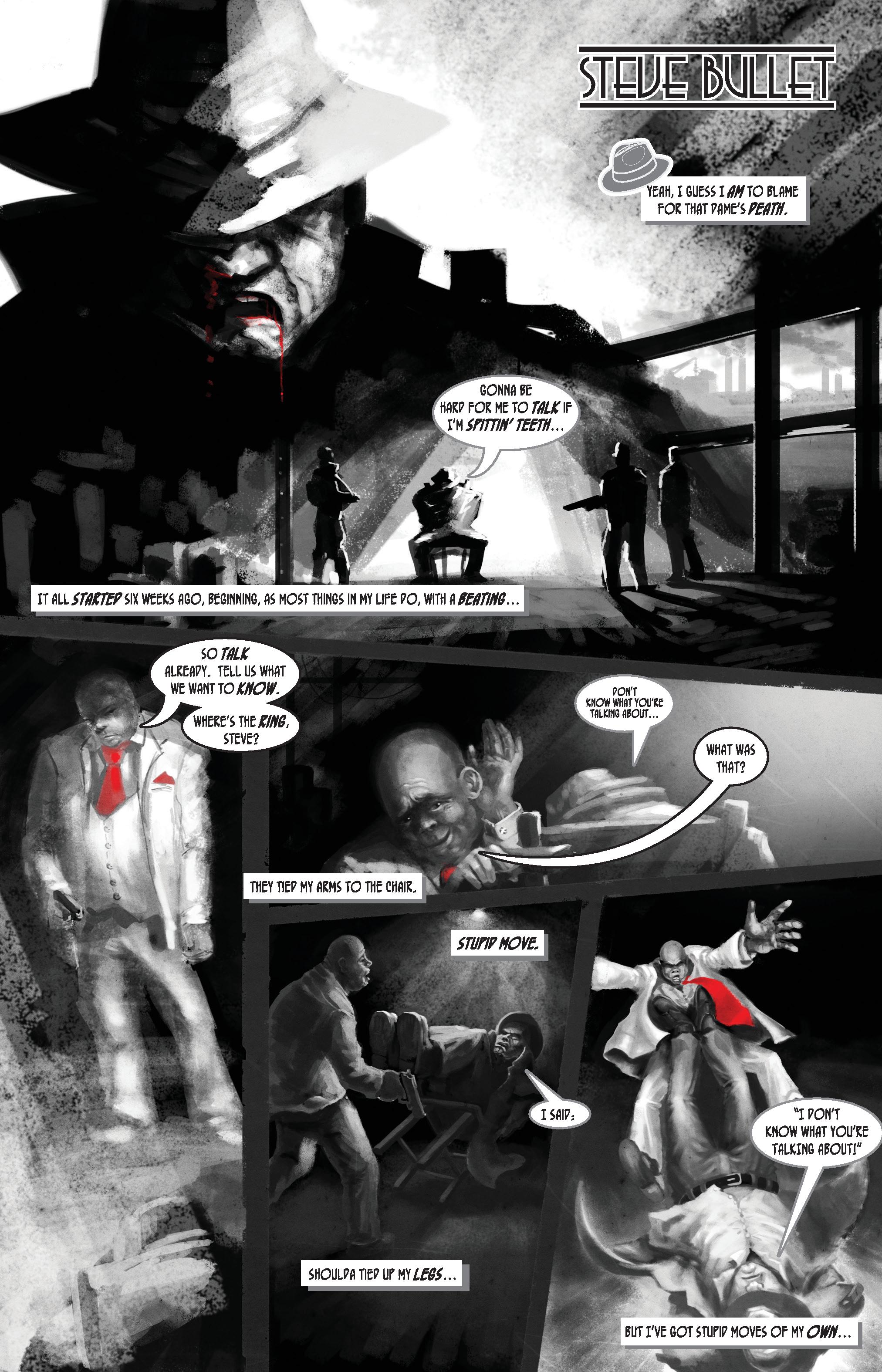 We get a section following each of the Bullet children, explaining what brought them here, and showing you a bit about their character. First up, is tough guy PI Steve Bullet, with dark, grimy, noir-soaked art from Sean Seal, who, aside from building a Michigan vacation home inside his colon, I cant express how much I love his art. And not just in this book, he’s the one I’m most familiar with, from Twitter and other books.
