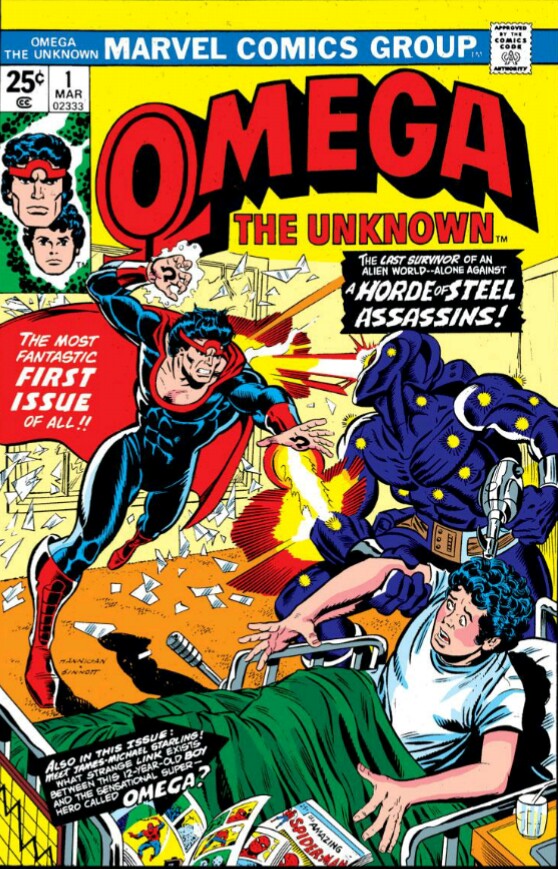 I’m going to start a new series for the blog here, for now called It’s New To Me, where I will take a look at older comics I’ve missed out on, somehow never got around to, or just found out about. Or maybe I’ve had them for awhile and didn’t get to them in a Timely Fashion (was that a Marvel joke? Was that a joke?) so let’s kick things off with something I’ve heard a lot about Omega: The Unknown. Strap on your sideburns, hang your coke-spoon necklaces in your thickly matted chest-muff, and lets travel back to the 1970’s when the D-double-E-J-A-Y’s didn’t have to wear headphones to be on the radio (I’m looking at you Dr. Johnny Fever) and people hadn’t started throwing doughnuts at Anne Wilson from Heart yet.