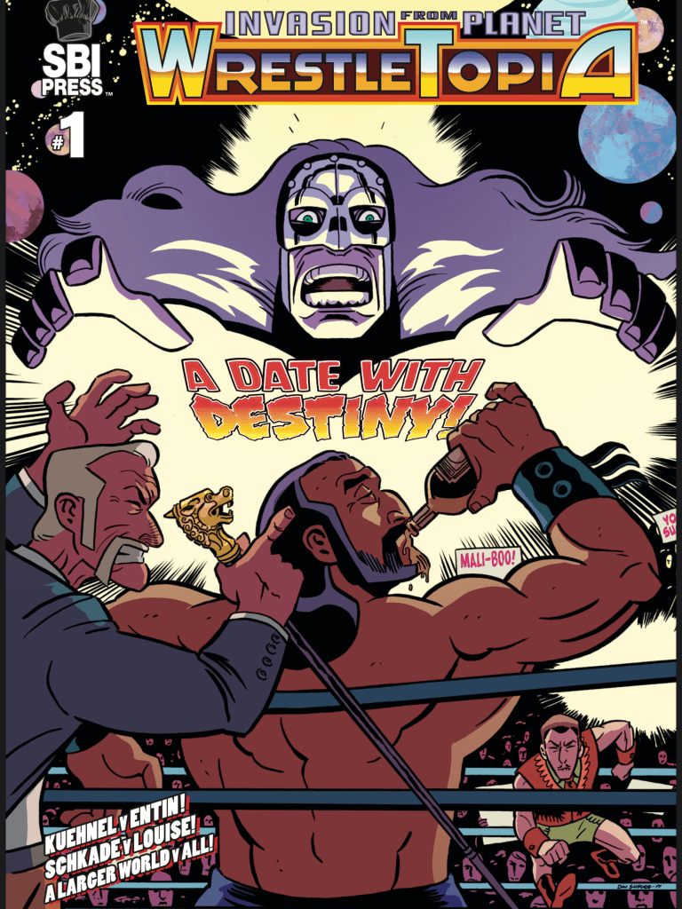 Before we get started, I will admit something, while I was itching to get back to writing reviews, when I got the review copies of Invasion From Planet Wrestletopia, I was hesitant to get started, mostly because I am not what you would call a wrestling fan, at least not since I was a kid in the mid 80’s. I also wasn’t sure if six issues would be a big chunk to jump back into reviews with after so long. So what is Invasion From Planet Wrestletopia, and what did I think? Climb up on those turnbuckles and jump with me.